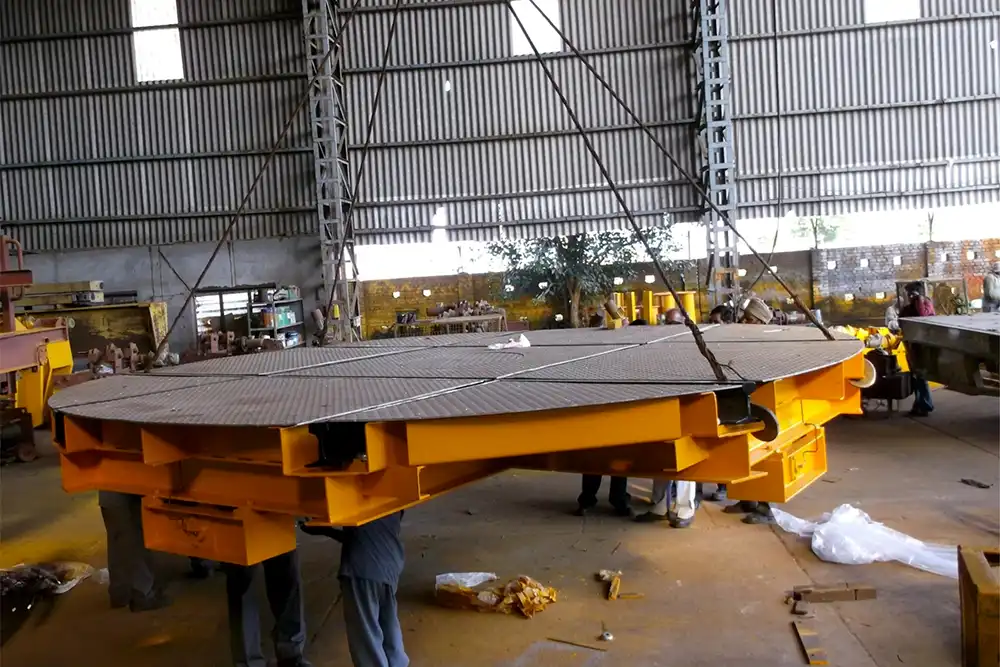 “GRIP” Turntables are designed to efficiently transfer bogies, trolleys, or wheelsets from one track to another at any desired angle within production or maintenance facilities. Built with heavy-duty precision engineering, these turntables ensure smooth rotation and reliable performance even under demanding industrial conditions.